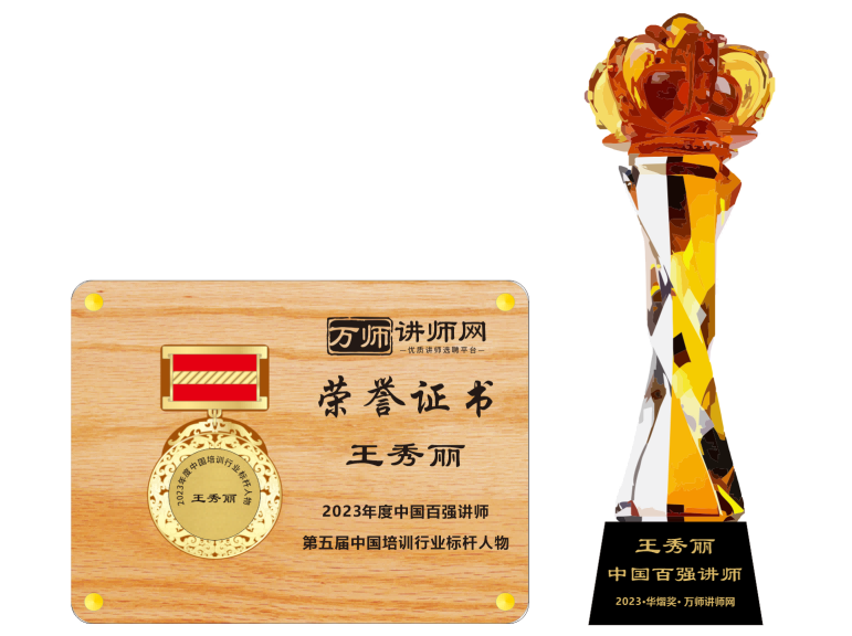恭喜王秀麗老師榮獲萬師講師網2023年度中國百強講師 暨第五屆中國培訓行業標桿人物